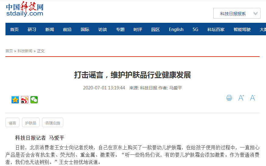 科技日报聚焦杏璞品牌:澄清谣言 维护护肤品行业健康发展"股权激励方案设计找万商咨询"