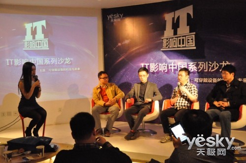 2013年11月2日,“IT影响中国”第一期沙龙——“可穿戴设备的机会与未来”正式开启,天极网盛邀多位来自可穿戴设备厂商、媒体、互联网以及风险投资的行业精英齐聚一堂,共同探讨可穿戴设备领域的热点话题。也希望凭借天极网十多年的行业经验与独到、专业的视角为大家呈现一个多维度的“可穿戴设备”产业。